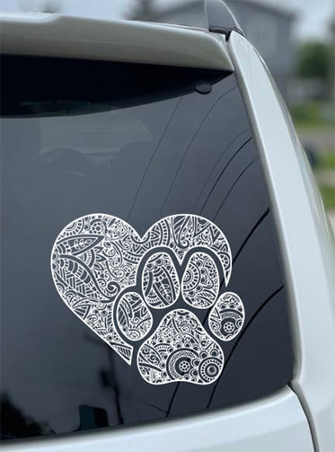 Medium-sized heart and paw mandala. Cut from Oracal 651 permanent intermediate calendared vinyl.